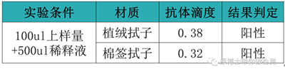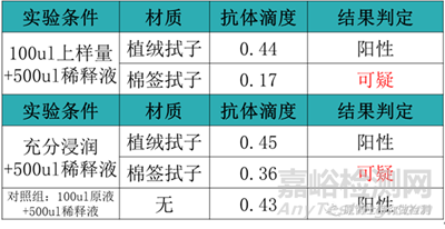 試驗(yàn)結(jié)果:干燥后抗體釋放率:植絨>棉簽。