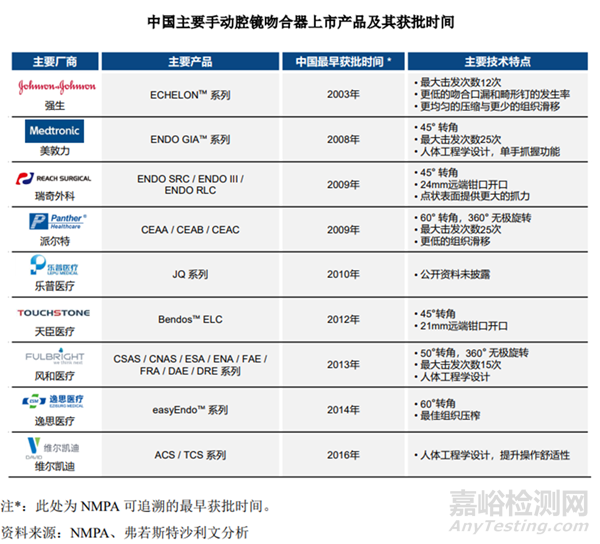 目前中國(guó)手動(dòng)腔鏡吻合器市場(chǎng)國(guó)產(chǎn)化率較低。隨著近年來(lái)中國(guó)國(guó)產(chǎn)廠商的手動(dòng)腔鏡吻合器逐步獲批上市,以及手動(dòng)腔鏡吻合器進(jìn)入帶量采購(gòu),手動(dòng)腔鏡吻合器國(guó)產(chǎn)化率逐步提升。國(guó)內(nèi)主要廠商包括:強(qiáng)生、美敦力、瑞奇外科、派爾特、樂(lè)普醫(yī)療、天臣醫(yī)療、風(fēng)和醫(yī)療、逸思醫(yī)療、維爾凱迪等。