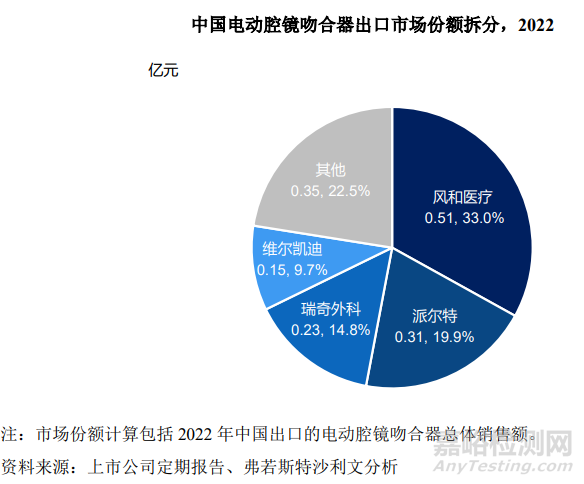 (2)根據(jù)弗若斯特沙利文出具的《微創(chuàng)外科手術(shù)器械市場(chǎng)研究報(bào)告》,2022 年度,在國(guó)產(chǎn)電動(dòng)腔鏡吻合器出口市場(chǎng)中,風(fēng)和醫(yī)療公司位列第一位,約占中國(guó)電動(dòng)腔鏡吻合器出口市場(chǎng)的33.0%