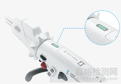 當(dāng)夾閉合適厚度的組織時(shí),器械上的指示燈會(huì)給予綠色提示,告知術(shù)者將有完美的縫合。