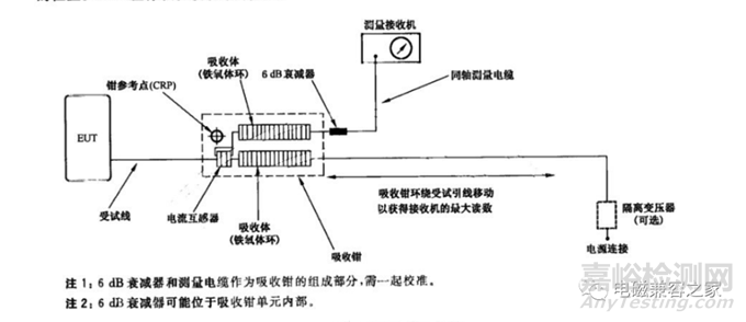 所需的主要試驗設備有:EMI測量接收機、功率吸收鉗 (見圖一)