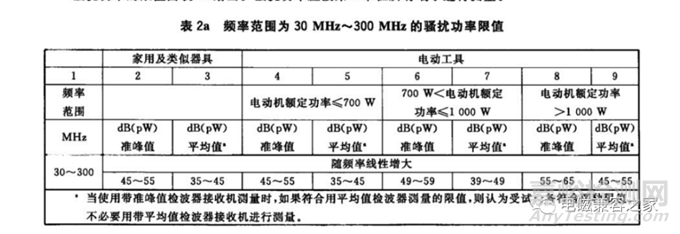 目前CISPR14-1(等同GB4343.1)只規(guī)定了30MHz-300MHz的騷擾功率限值。對于300MHz-1000MHz的限值暫未做出規(guī)定。