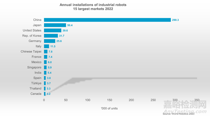 中國是迄今為止世界上最大的市場。2022年,290,258臺的年安裝量以5%的增長取代了2021年的前記錄。這一最新增長非常引人注目,因?yàn)樗踔脸^了2021年的結(jié)果,后者比2020年增長了57%。為了服務(wù)這個(gè)充滿活力的市場,國內(nèi)外的機(jī)器人供應(yīng)商都在中國建立了生產(chǎn)工廠,并不斷提高產(chǎn)能。平均每年機(jī)器人安裝量以13%的速度增長(2017-2022年)。