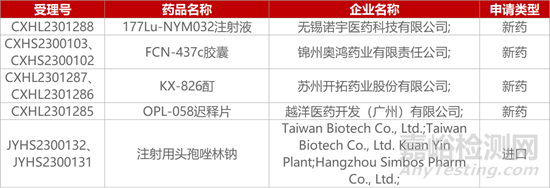 1. CDE新藥受理情況(11月21日)