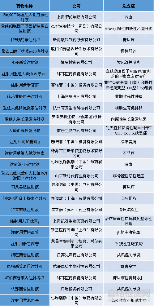 1.多肽類激素如:胰島素及胰島素類似物、生長(zhǎng)激素、促卵泡成熟激素等;