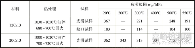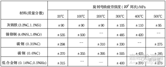 金屬在高溫下通常沒有疲勞極限(鑄鐵除外),疲勞強度隨壽命的增加而不斷降低,S-N 曲線沒有水平段。部分鋼鐵材料的高溫疲勞強度見表1。