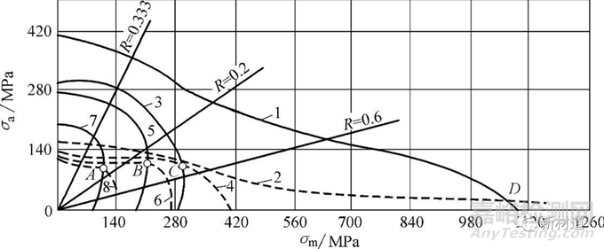 對于缺口試樣,平均應力的影響服從Gerber拋物線或Goodman直線。