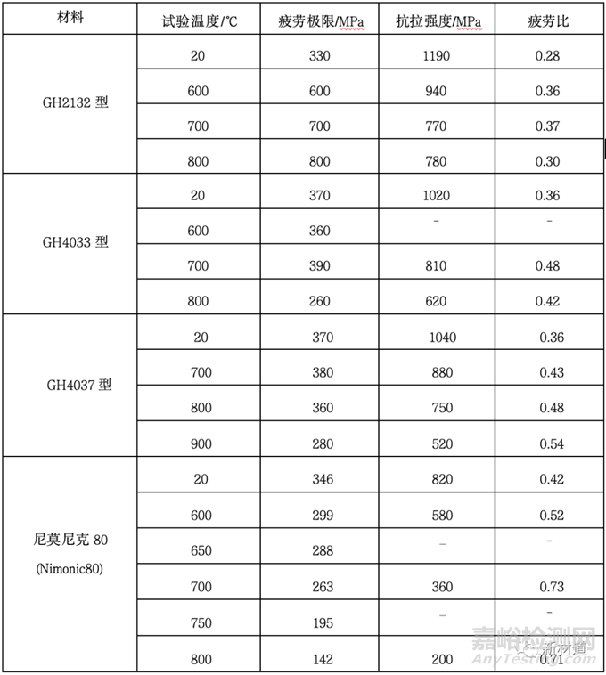 表2 高溫合金在不同溫度下的疲勞極限和疲勞比