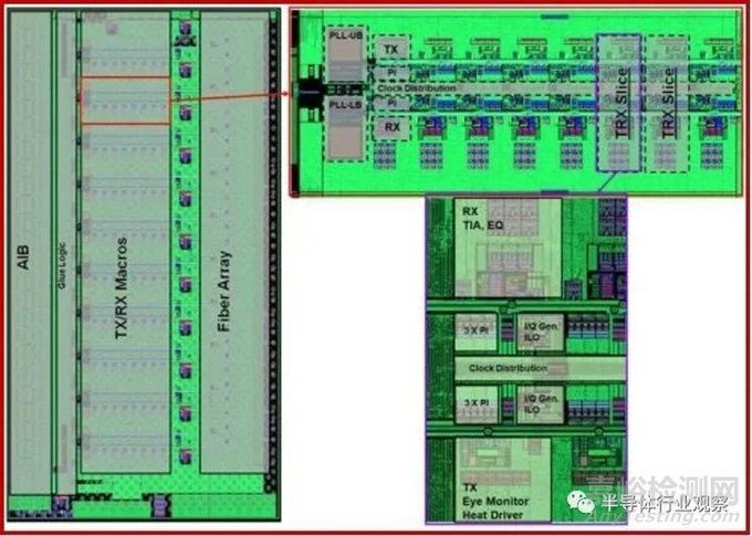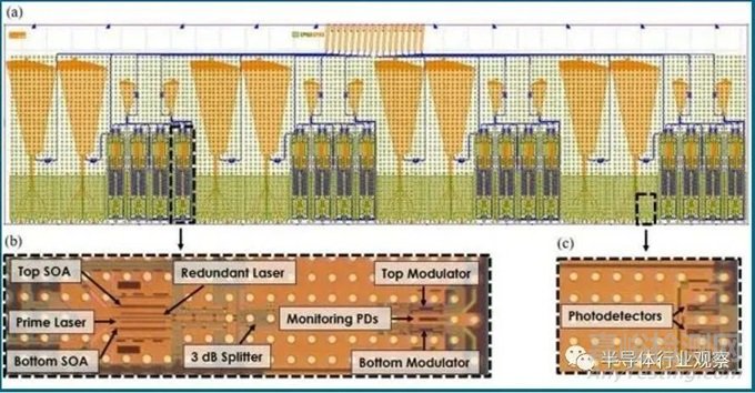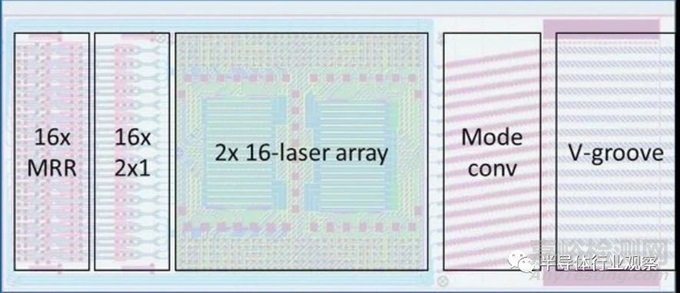 圖1是Intel 16通道PIC的布局圖。由于在實際芯片照片中很難看到波導,因此顯示了布局圖。