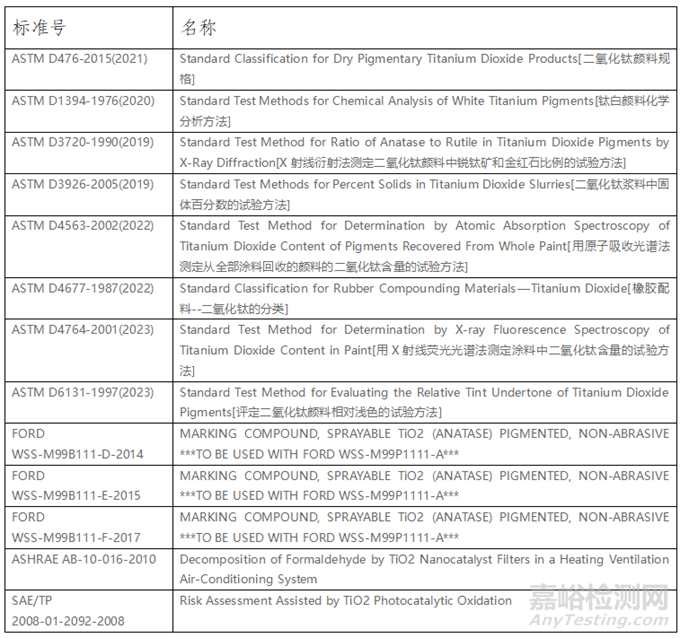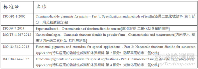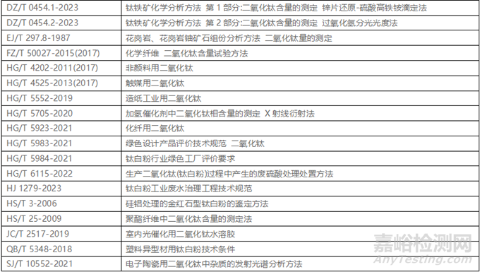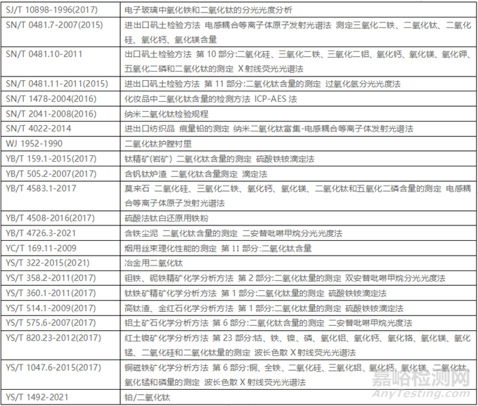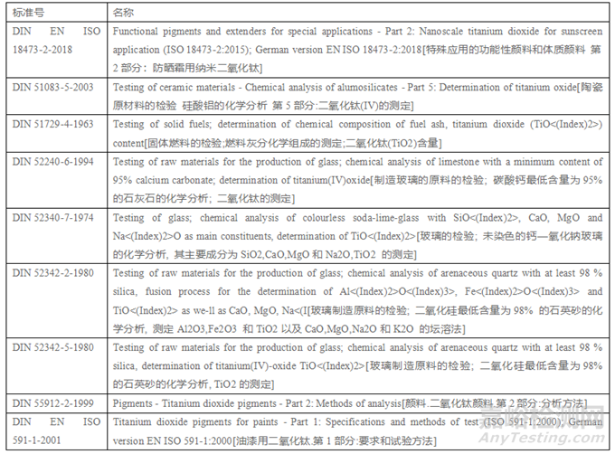 2.3德國(guó)標(biāo)準(zhǔn)除二氧化鈦顏料、涂料用鈦白外均是方法標(biāo)準(zhǔn),且主要側(cè)重于玻璃行業(yè)顏料二氧化鈦含量的測(cè)定;