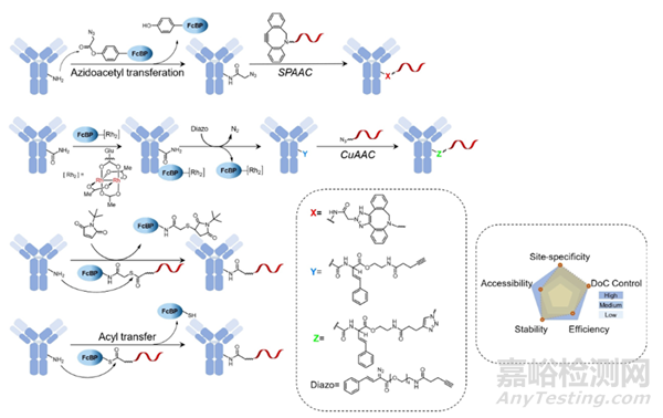 盡管聚糖結(jié)構(gòu)的高度可變性可能對(duì)有效載荷的偶聯(lián)產(chǎn)生挑戰(zhàn),但糖工程是一種有吸引力的天然抗體功能化生物偶聯(lián)技術(shù)。然而,工程抗體生產(chǎn)過程相對(duì)復(fù)雜,與其他AOC制備過程相比,不能保證高生產(chǎn)率。