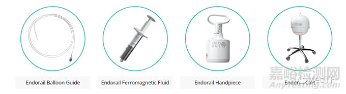 Endorail由四個(gè)部件組成:Endorail Balloon Guide、Endorail Ferromagnetic Fluid、Endorail Handpiece和Endorail Cart。