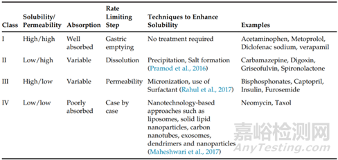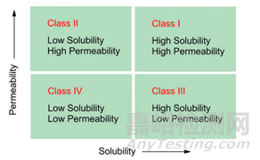 圖1.BCS分類系統(tǒng)圖示,根據(jù)藥物的滲透性和溶解性對藥物進行分類。當(dāng)存在于最高濃度速釋制劑中的藥物量在胃腸道pH值(1.2-7.5)的可能范圍內(nèi)可溶于250毫升水中時,化合物被定義為高溶解性。高滲透性化合物定義為吸收率為>90%或通過體外或體內(nèi)方法評估的滲透性等于或高于吸收率為90%的參考化合物的化合物。(來源于參考文獻1)