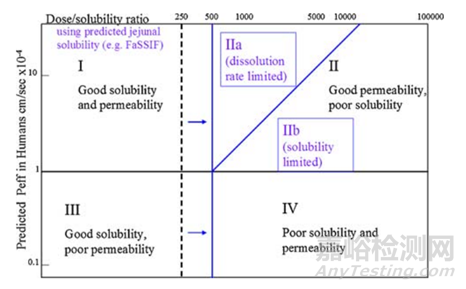 改良版本的BCS分類系統(tǒng),即“可開發(fā)性分類系統(tǒng)”(DCS),其考慮了生物相關(guān)的溶解度(在FaSSIF中)以及以目標藥物粒度表示的溶出速率。此外,在DCS中使用了溶解度限制可吸收劑量(SLAD),這改變了先前報道的最大可吸收劑量的概念。生物相關(guān)溶解度通常高于相應(yīng)的水溶液值,并且考慮增加胃腸液體積(500ml)用于藥物溶解。因此,BCS的溶解度分界線在DCS中被轉(zhuǎn)移到更高的極限,以區(qū)分藥物類別??砷_發(fā)性系統(tǒng)根據(jù)藥物吸收的溶出限制(IIa)或溶解度極限(IIb)進一步區(qū)分II類化合物。這種定義對于處方的選擇是有意義的。盡管DCS已被引入作為一種可開發(fā)性評估工具,具有一定溶出限制的BCSII化合物可以用基于顆粒尺寸減小、濕法制粒和/或添加表面活性劑的相當(dāng)簡單的處方來開發(fā)。然而,DCSIIb類別中的其他BCSII化合物可能需要使能處方,例如LBF或ASD。似乎,為了選擇基于生物藥劑學(xué)分類系統(tǒng)的早期處方策略,DCS提供了一個比BCS更詳細的開發(fā)方向。