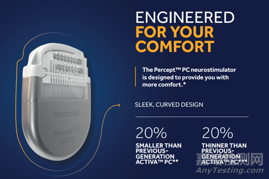 最后,在產(chǎn)品設(shè)計(jì)上,Percept™PC也更小、更薄、更符合人體工程學(xué)。據(jù)美敦力官方披露PerceptIMPC相較ACTIVAIMPC體積縮小了20%,側(cè)面也輕薄了20%。