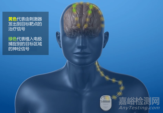 腦深部電刺激(DBS)療法通過(guò)立體定向技術(shù),將電極植入大腦深部的某些區(qū)域,在埋植于鎖骨下皮下的植入式脈沖發(fā)生器(IPG)的控制下,電極發(fā)射電脈沖刺激靶點(diǎn)以調(diào)節(jié)神經(jīng)功能,最終達(dá)到治療神經(jīng)/精神疾病的目標(biāo)。IPG包含電池和可提供電刺激的電子組件,可由患者和臨床醫(yī)生進(jìn)行控制,定期調(diào)整諸如頻率、脈沖寬度和電壓等刺激參數(shù),以便最大程度地發(fā)揮DBS的神經(jīng)調(diào)控功能。