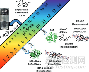 圖5:pH敏感的氨基酸修飾的瓊脂糖納米載體用于遞送核酸(DNA)。其中,AEAm和AECAm為修飾后的瓊脂糖,藥物在酸性條件結(jié)合,堿性條件釋放