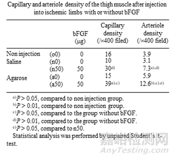 表3:bFGF的瓊脂糖水凝膠顆粒增強(qiáng)了血管生成功效