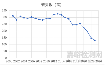 圖9: Pubmed以“((drug) OR (delivery)) AND (agarose)”為關(guān)鍵搜索到的文章篇數(shù)