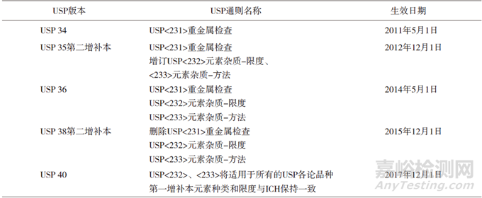 2015年12月,USP38第二增補本刪除了<231>重金屬檢查法,且<231>重金屬檢查法自2018年1月1日不再執(zhí)行。