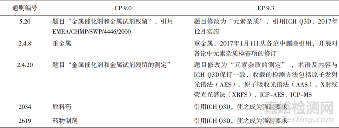 1.4 EP元素雜質(zhì)相關(guān)控制要求的增修訂歷程