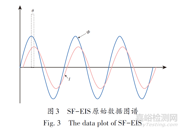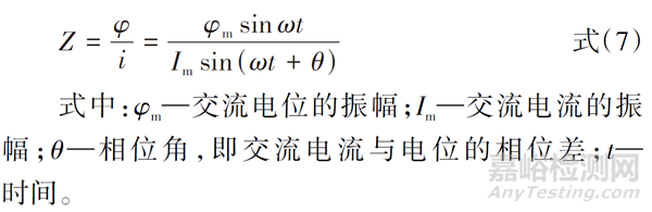 EIS在現(xiàn)場服役涂層快速評價中也有應用,為了滿足涂層現(xiàn)場檢測時間短、不需要復雜的數(shù)據(jù)處理的要求,EIS現(xiàn)場測試往往不需要寬頻掃描,僅需設(shè)置特定單頻測試。此時可用控制電位李沙育(Lissajous)圖形法進行測試,對待測涂層/金屬區(qū)域施加正弦波交流電位信號φ,得到響應電極電流是比電位超前θ 角的同頻正弦波i,涂層金屬的阻抗如式(7)所示。