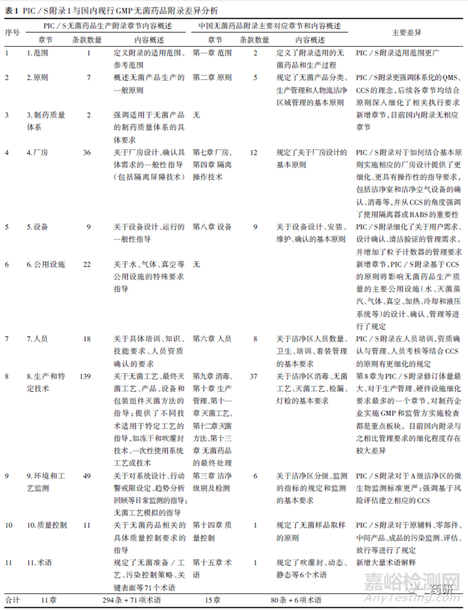 1、PIC/S 與國內(nèi)現(xiàn)行GMP 無菌藥品附錄的主要差異分析