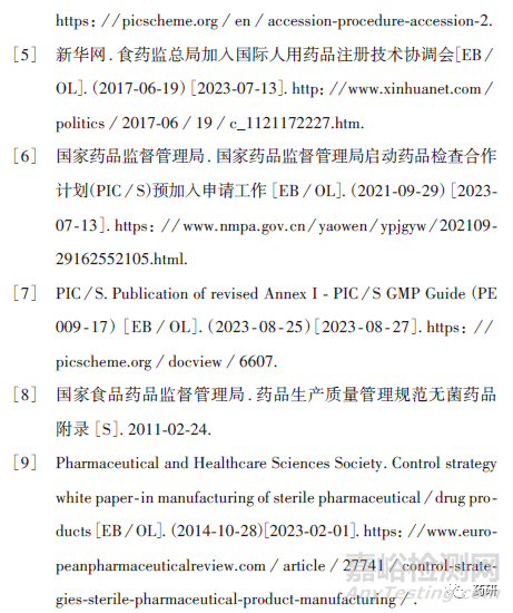 為促進我國藥品監(jiān)管事業(yè)高質(zhì)量發(fā)展,中國已于2017年加入國際人用藥品注冊技術(shù)協(xié)調(diào)會(ICH)[5],2021年9月,中國國家藥品監(jiān)督管理局(NMPA)啟動了PIC/S 預加入申請工作[6],至2023年9月通過2年的預申請審查期,NMPA將進入正式申請階段。