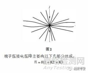 3.1.1端子電壓降測試方法如圖3所示,在端子與電線壓接處中間位置至電線