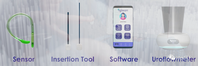 Glean由四個部件組成:傳感器(Sensor)、輸送系統(tǒng)(Insertion Tool)、App(Software)和尿流量計(Uroflowmeter)。
