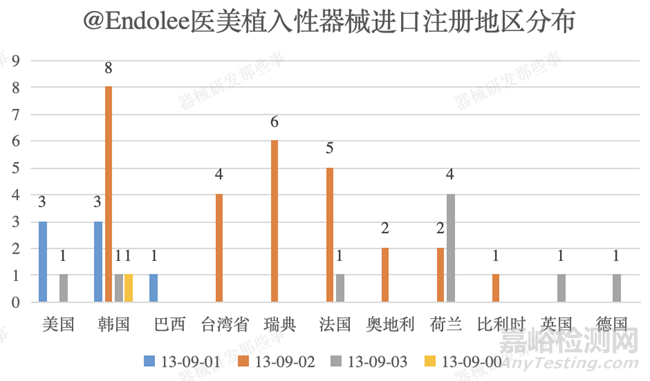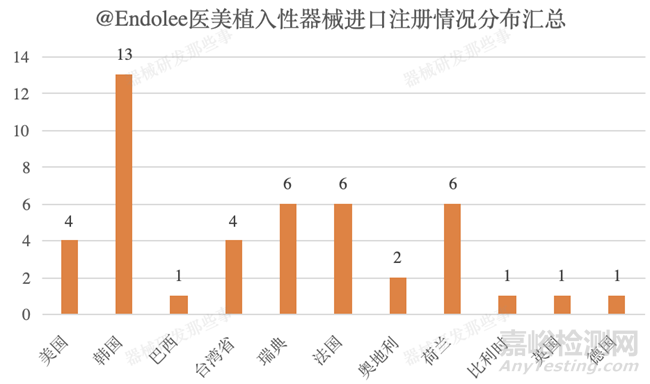 截止培訓(xùn)時(shí)間(2021年9月)醫(yī)美植入性器械進(jìn)口注冊(cè)共計(jì)獲批45個(gè),主要集中在韓國(13個(gè))、瑞典(6個(gè))、法國(6個(gè))、荷蘭(6個(gè))、美國(4個(gè))及臺(tái)灣?。?個(gè))。
