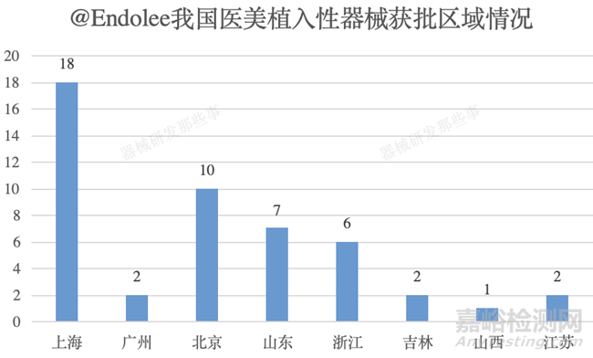 截止培訓(xùn)時(shí)間,國產(chǎn)醫(yī)美類植入性器械共計(jì)獲批48個(gè),同時(shí)不難發(fā)現(xiàn)國內(nèi)主要集中在上海(18個(gè))、北京(10個(gè))、山東(7個(gè))和浙江(6個(gè))等地。