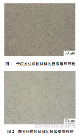 采用水+硝酸+鹽酸+氫氟酸+過(guò)氧化氫混合溶液腐蝕GH4169合金試樣,試樣表面無(wú)沉積膜,顯微組織形貌清晰,只顯示奧氏體晶界,不顯示δ相。新腐蝕方法適用于GH4169合金晶粒度的檢驗(yàn)。