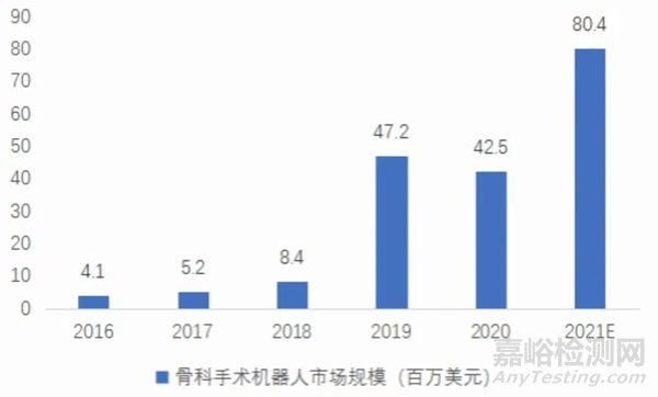 2016-2020中國骨科手術(shù)機(jī)器人市場(chǎng)規(guī)模及占整體手術(shù)機(jī)器人比重情況