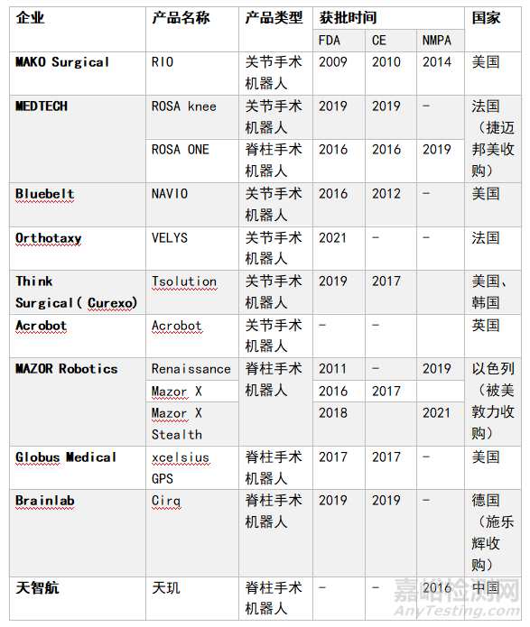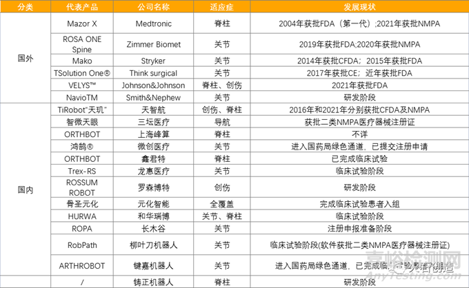 全球代表性骨科手術(shù)機(jī)器人發(fā)展情況總覽