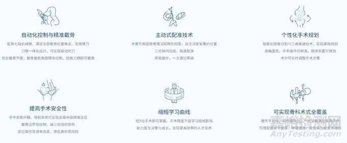 據(jù)官網(wǎng)介紹,該產(chǎn)品實(shí)現(xiàn)高效點(diǎn)云配準(zhǔn),快速精確的自動(dòng)定位,實(shí)時(shí)顯示磨挫狀態(tài),立體邊界控制,亞毫米級(jí)精度的安全高效打磨,斷電保護(hù)模式避免打磨超過規(guī)劃范圍。提高手術(shù)的智能化水平,數(shù)據(jù)積累和分析能力,整合了患者的解剖生理特點(diǎn)、假體設(shè)計(jì)和手術(shù)技術(shù),利用數(shù)字化優(yōu)勢(shì),達(dá)到假體選擇、手術(shù)方案、手術(shù)操作的個(gè)性化。