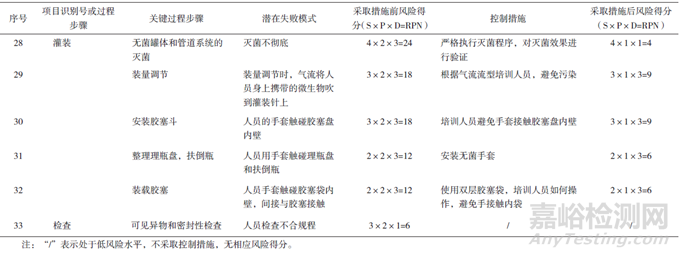 摘要 目的:查找注射劑和滴眼劑生產(chǎn)的關(guān)鍵控制點(diǎn),制定預(yù)防措施,為注射劑和滴眼劑提供良好的質(zhì)控保障。方法:調(diào)研兩家醫(yī)藥企業(yè),采用危害分析和關(guān)鍵控制點(diǎn)法、失敗模式影響分析等風(fēng)險(xiǎn)管理工具,查找生產(chǎn)過程的風(fēng)險(xiǎn)點(diǎn),開展風(fēng)險(xiǎn)評估和風(fēng)險(xiǎn)控制,制定預(yù)防措施。結(jié)果:對風(fēng)險(xiǎn)系數(shù)處于高風(fēng)險(xiǎn)和中等風(fēng)險(xiǎn)水平的風(fēng)險(xiǎn)源采取控制措施后,各風(fēng)險(xiǎn)點(diǎn)的風(fēng)險(xiǎn)等級有所降低。結(jié)論:注射劑和滴眼劑原輔包須與制劑的生產(chǎn)環(huán)境相匹配,生產(chǎn)監(jiān)測的全面化與規(guī)范化有待提升。