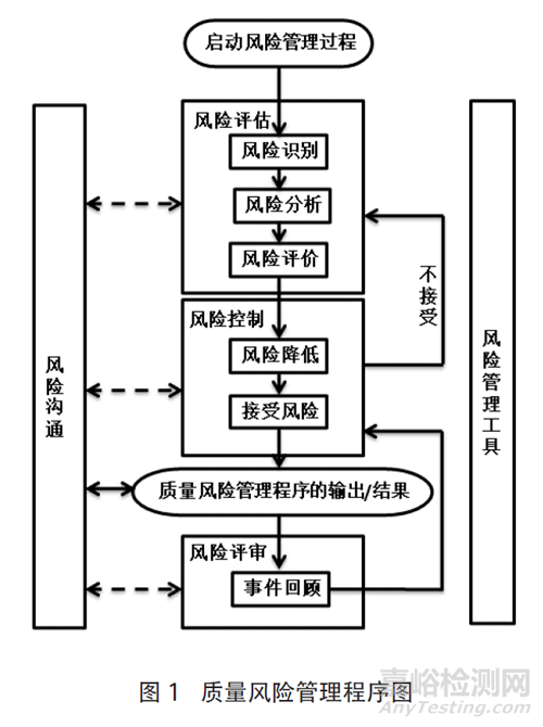 典型的質(zhì)量風(fēng)險(xiǎn)管理程序見圖1,風(fēng)險(xiǎn)管理程序啟動(dòng)后,主要分為以下幾部分進(jìn)行[10]。