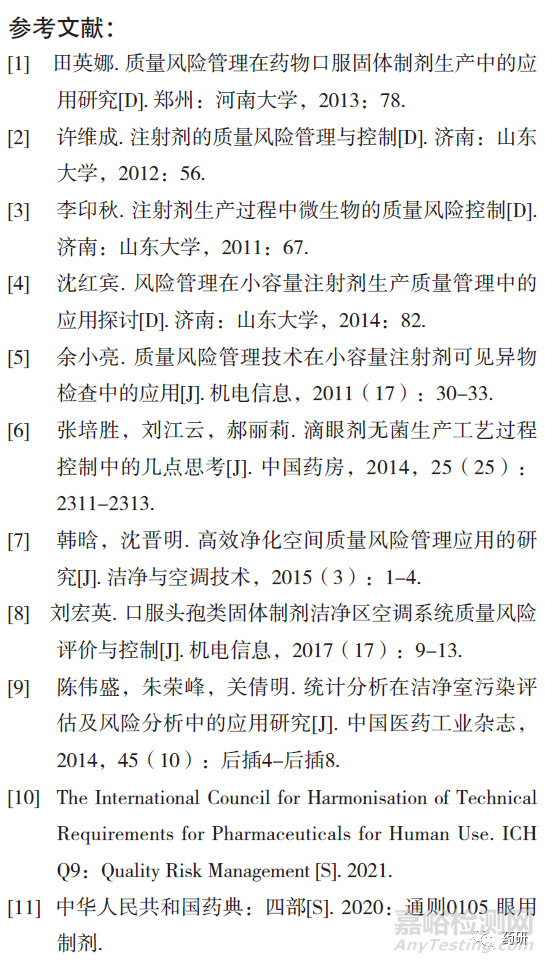 本研究以風(fēng)險(xiǎn)較高的注射劑和滴眼劑為研究對象,采用風(fēng)險(xiǎn)評估管理工具——危害分析和關(guān)鍵控制點(diǎn)(Hazard Analysis and Critical Control Points,HACCP)、失敗模式影響分析(Failure Mode Effects Analysis,F(xiàn)MEA),對注射劑、滴眼劑及原輔包生產(chǎn)工藝各環(huán)節(jié)的環(huán)境進(jìn)行風(fēng)險(xiǎn)識(shí)別、分析和評價(jià),查找關(guān)鍵控制點(diǎn),制定預(yù)防措施,為類似無菌制劑提供良好的質(zhì)控保障。