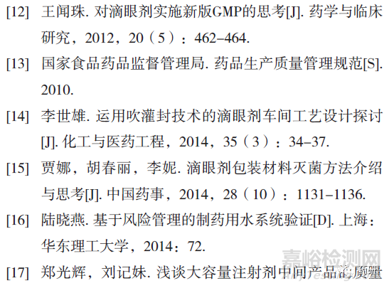 內(nèi)包材和注射用水是滴眼劑生產(chǎn)過程兩個(gè)需要重點(diǎn)關(guān)注的風(fēng)險(xiǎn)要素。滴眼劑的內(nèi)包材即滴眼劑瓶,材質(zhì)多為低密度聚乙烯、聚丙烯、聚氯乙烯、聚酯類等[12],在高溫下易變形,多采用無菌工藝制備[15]。配制滴眼液需使用注射用水。注射用水的制備工藝:以純化水為原水,經(jīng)多效蒸餾水機(jī)處理,形成純化蒸汽,純化蒸汽經(jīng)冷凝成為注射用水,進(jìn)入儲(chǔ)罐供使用[16]。