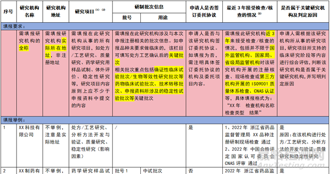 (1)研制單位的研究項(xiàng)目需要填寫完整,尤其是處方/工藝研究、質(zhì)量研究、藥學(xué)研究用樣品試制、體外評(píng)價(jià)、穩(wěn)定性研究等關(guān)鍵研究項(xiàng)目;(2)研制單位信息與研究信息需要與申報(bào)資料保持一致,審核老師是會(huì)校對(duì)兩邊出入的;(3)如果某家單位的檢查次數(shù)過多,為了保持整潔,可以將其檢查信息另附表。
