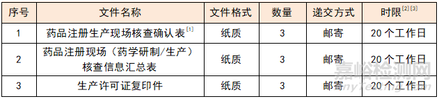 在這個(gè)地方需要提供三樣內(nèi)容:《藥品注冊(cè)生產(chǎn)現(xiàn)場核查確認(rèn)表》、《藥品注冊(cè)現(xiàn)場(藥學(xué)研制/生產(chǎn))核查信息匯總表》、《生產(chǎn)許可證復(fù)印件》。