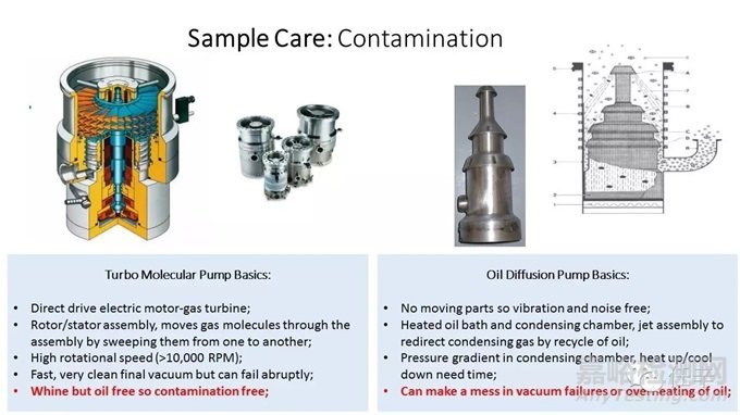 入門(mén)級(jí)別的帶電粒子束科學(xué)儀器-鎢燈絲掃描電鏡,一般使用油潤(rùn)滑的旋轉(zhuǎn)泵Rotary Pump,作為其前級(jí)真空泵Pre-pump,日系的廠家會(huì)使用油擴(kuò)散泵Oil Diffusion Pump,作為系統(tǒng)的高真空泵High vacuum pump,除了這兩種來(lái)自系統(tǒng)配置內(nèi)的、導(dǎo)致的來(lái)自系統(tǒng)本身的“污染源”之外,可以很負(fù)責(zé)任地說(shuō),現(xiàn)代的帶電粒子束設(shè)備廠家都會(huì)把系統(tǒng)的清潔當(dāng)做第一要?jiǎng)?wù)來(lái)對(duì)待和處理的;所以換句話(huà)說(shuō),儀器系統(tǒng)本身是不會(huì)自己污染自己的;那么系統(tǒng)中出現(xiàn)的污染既然是客觀存在的,這些污染到底是來(lái)自哪里的呢?答案是:絕大部分的污染源都是操作員在操作過(guò)程中、在無(wú)意間、或好意做錯(cuò)事,自己引入了系統(tǒng)中的;