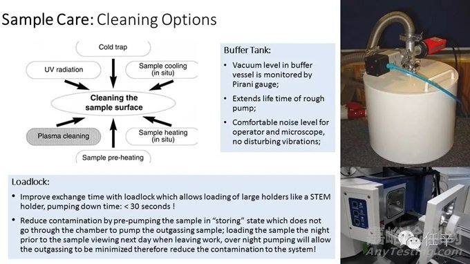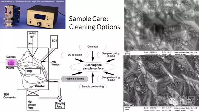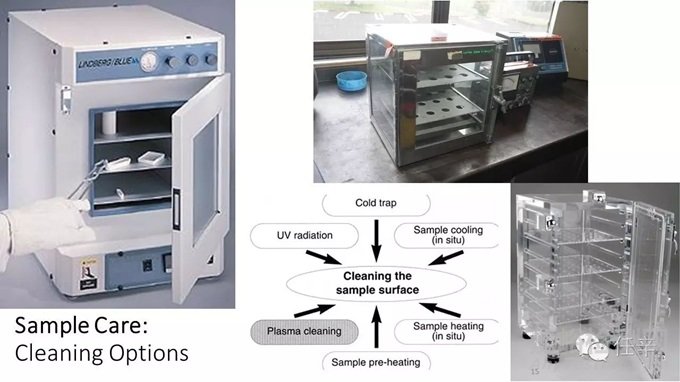 說(shuō)了這么多樣品照料中的系統(tǒng)污染現(xiàn)象,那么,如何防污染抗污染呢?在上一章節(jié)中,我們提到過(guò),樣品照料的方法和相關(guān)設(shè)備主要有:吹掃清潔Purge cleaning、加熱清潔heating cleaning、冷阱清潔Cold trap、紫外清潔UV cleaning、臭氧清潔O3 cleaning、樣品表面等離子親水性處理Plasma glow discharging、等離子清洗處理Plasma cleaning、樣品真空保護(hù)傳輸 Vacuum transfer,等;