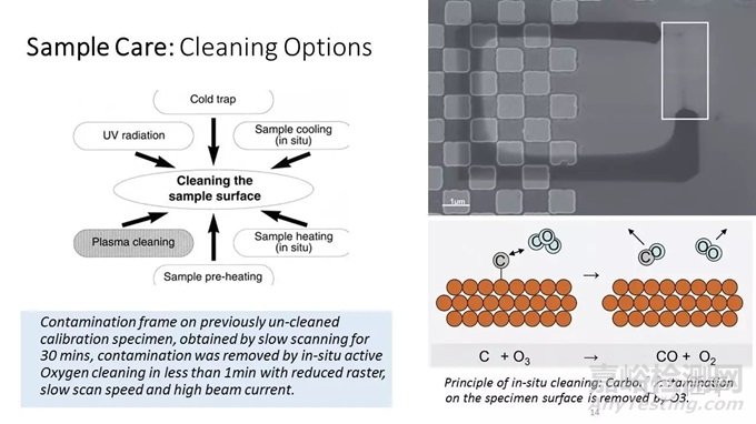 利用粒子束能量電離純氧產(chǎn)生臭氧O3清洗碳沉積也是另一個(gè)有效的方法,在樣品允許范圍內(nèi),安全第一的前提下也建議使用;