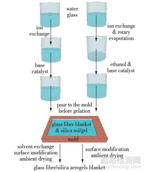 圖4 玻璃纖維增強SiO2氣凝膠制備流程圖[43]