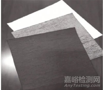 Tesla公司在其汽車鋰離子電池組的專利中設(shè)計了一種由隔熱材料和彈性材料復合制成的隔離板,置于電池模塊不同列單體之間,以此阻斷相鄰單體間的熱失控傳播。采用導熱系數(shù)約0.020W/(m·K)的氣凝膠隔熱板,可提高電池組散熱能力,改善電池組內(nèi)部溫度分布均勻性,同時能大幅延長熱失控傳播時間,提高電池組運行安全性能[6]。目前國內(nèi)生產(chǎn)氣凝膠隔熱片的廠家并不多,江蘇安珈新材料與寧德時代合作,首次開發(fā)了900℃及1000℃以上的產(chǎn)品,采用A1級阻燃纖維基材作為基體材料,經(jīng)超臨界干燥和表面改性技術(shù),制備疏密度0.15~0.25g/cm、常溫導熱率低于0.02W/(m·K)的電池隔熱片材料(圖8),具有耐老化、化學性質(zhì)穩(wěn)定、高溫下不產(chǎn)生有毒有害氣體、導熱系數(shù)低、輕質(zhì)、厚度薄等優(yōu)點,其與傳統(tǒng)泡沫板、玻璃纖維棉、真空絕熱板電池隔熱片相比,可保障電池組在5min不燃燒、不爆炸[61]。
