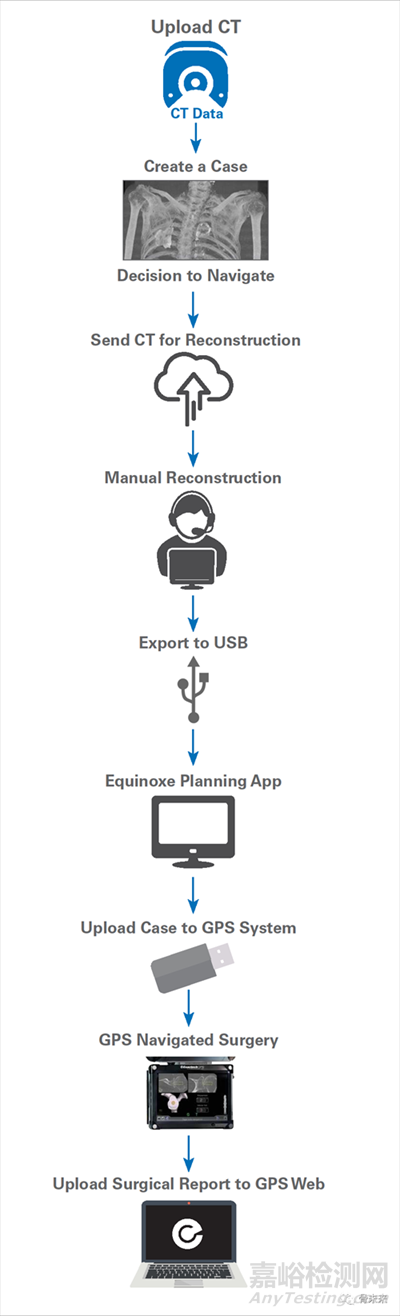 在使用導(dǎo)航系統(tǒng)之前,要上傳患者的CT數(shù)據(jù),然后使用手術(shù)計劃軟件Equinoxe Planning制定手術(shù)方案,制定好方案后再把案例上傳到導(dǎo)航系統(tǒng)中。手術(shù)結(jié)束后,手術(shù)報告會上傳到ExactechGPS Web網(wǎng)頁,上面詳細(xì)記錄著手術(shù)的信息。
