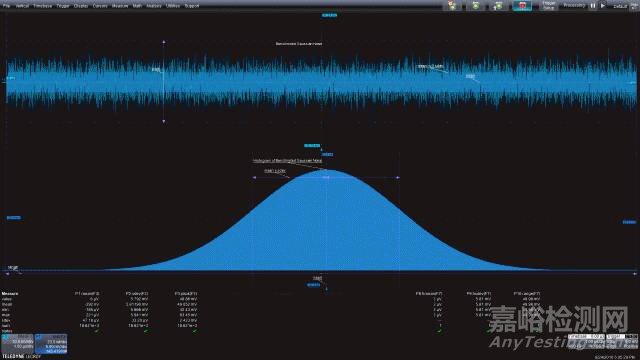 圖3:帶寬受限噪聲信號(hào)的柱狀圖呈現(xiàn)出典型的高斯貝爾形狀的響應(yīng)。柱狀圖參數(shù)讀取柱狀圖均值、標(biāo)準(zhǔn)偏差和范圍。