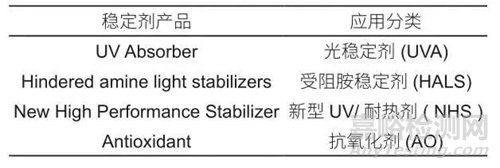 2.2不同類型的穩(wěn)定劑于水性罩光清漆對(duì)珠光漆耐候和耐熱實(shí)驗(yàn)設(shè)計(jì)研究